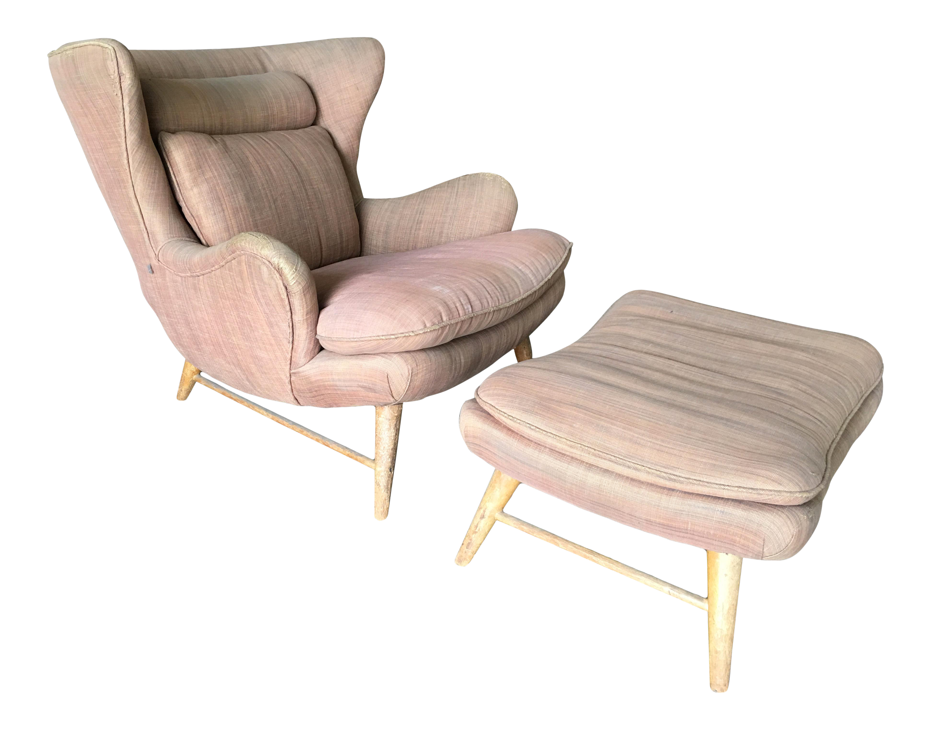 Large overstuffed chair with ottoman pink.
