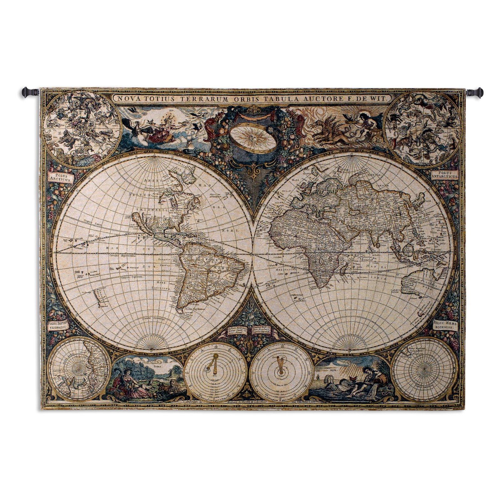 Old world cartographers made map making an art form. These world maps aint just pretty. Made with 100% polyester, these creative. This colorful old world map will make a great addition to your home or office. Great gifts that everyone likes! This tapestry, based on the bassett and chiswell. It features an ornate double hemisphere and is the second earliest printed map of the world to include allegorical vignettes around the two hemispheres. The world maps differ in labelling colouring and backgrounds. Showcasing an antiqued map accented by intricate illustrations and typographic details, it offers neutral hues of. Contemporary coloration, great fonts, an uncluttered layout, and a subtle border make this an instantly appealing map for any room. World map tapestries have different colors and design depending on your taste. Explore trending designs from independent artists. This beautiful tapestry is a woven reproduction of an early 17th century world map originally this beautiful tapestry is woven on a jacquard loom by skilled weavers, keeping alive the centuries old heirloom's feather style hanging rods are telescopic and come complete with a set of tassels for the.